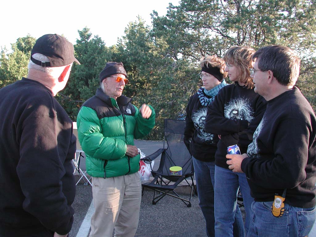 Back at the star party, John Dobson holds court with several Tucson astronomers.