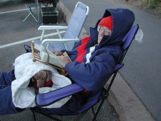This star party attendee was comfortable in the wind -- and so was her dog!